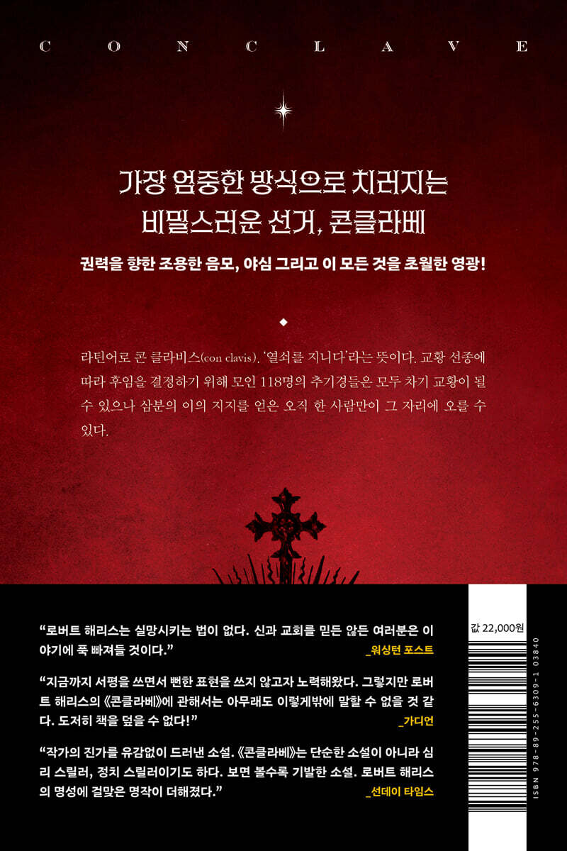 『콘클라베』는 믿음과 권력의 이면을 들여다보는 지적 독서의 진수이며, 긴 여운을 남기는 종교 정치 스릴러의 수작이다.